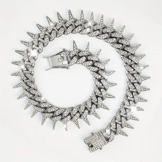20mm Dog Leash Collar Pet Diamond Cuban Chain Thorn Pointed Walking Chain Jewelry for Small and Medium Cats and Dogs